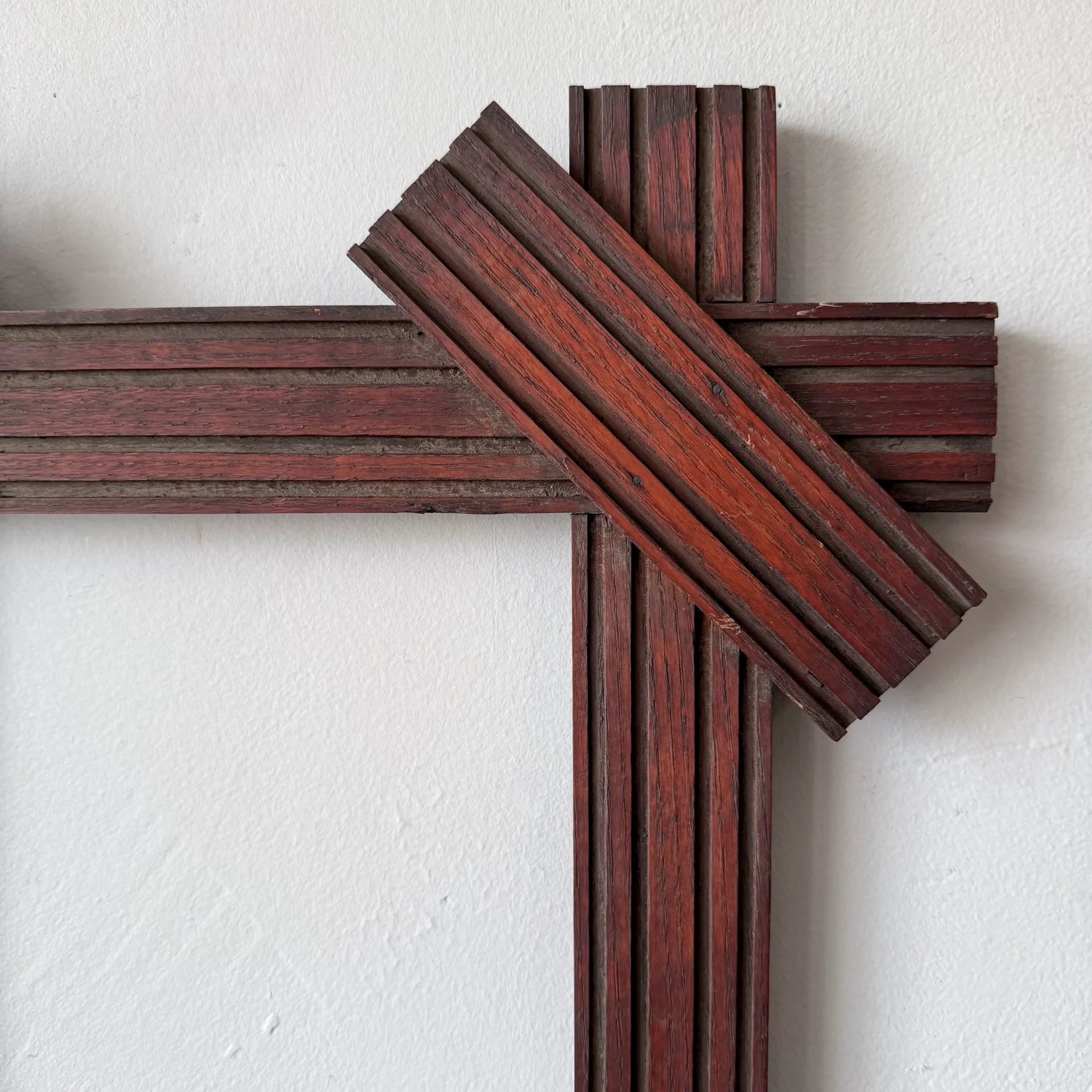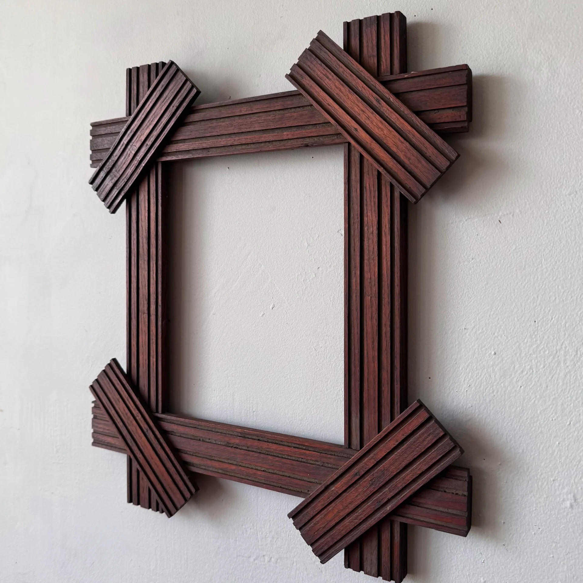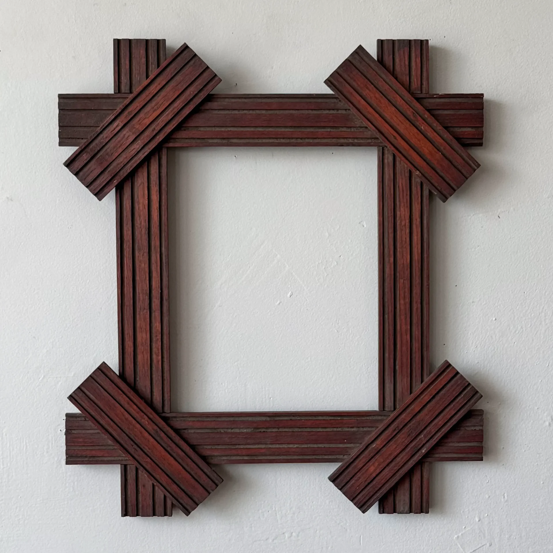 Classic cross-cornered or crisscross Adirondack-style picture frame.