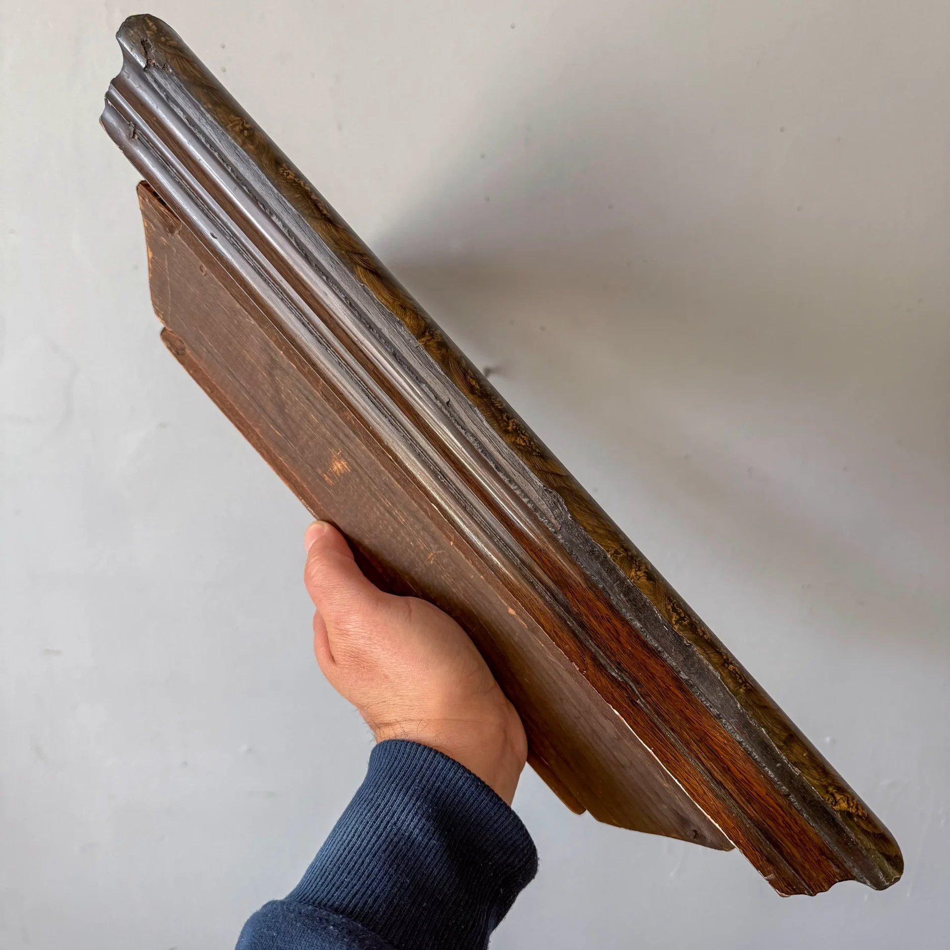 Inner painted molding has etched decoration.