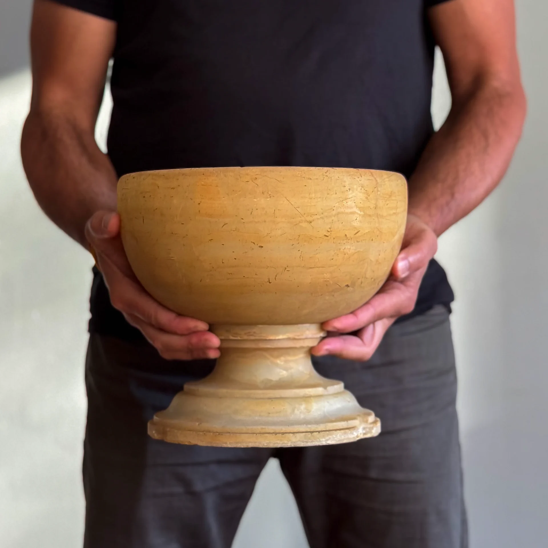 With no discernible seam, the vessel appears to have been turned from a single, substantial piece of stone.
