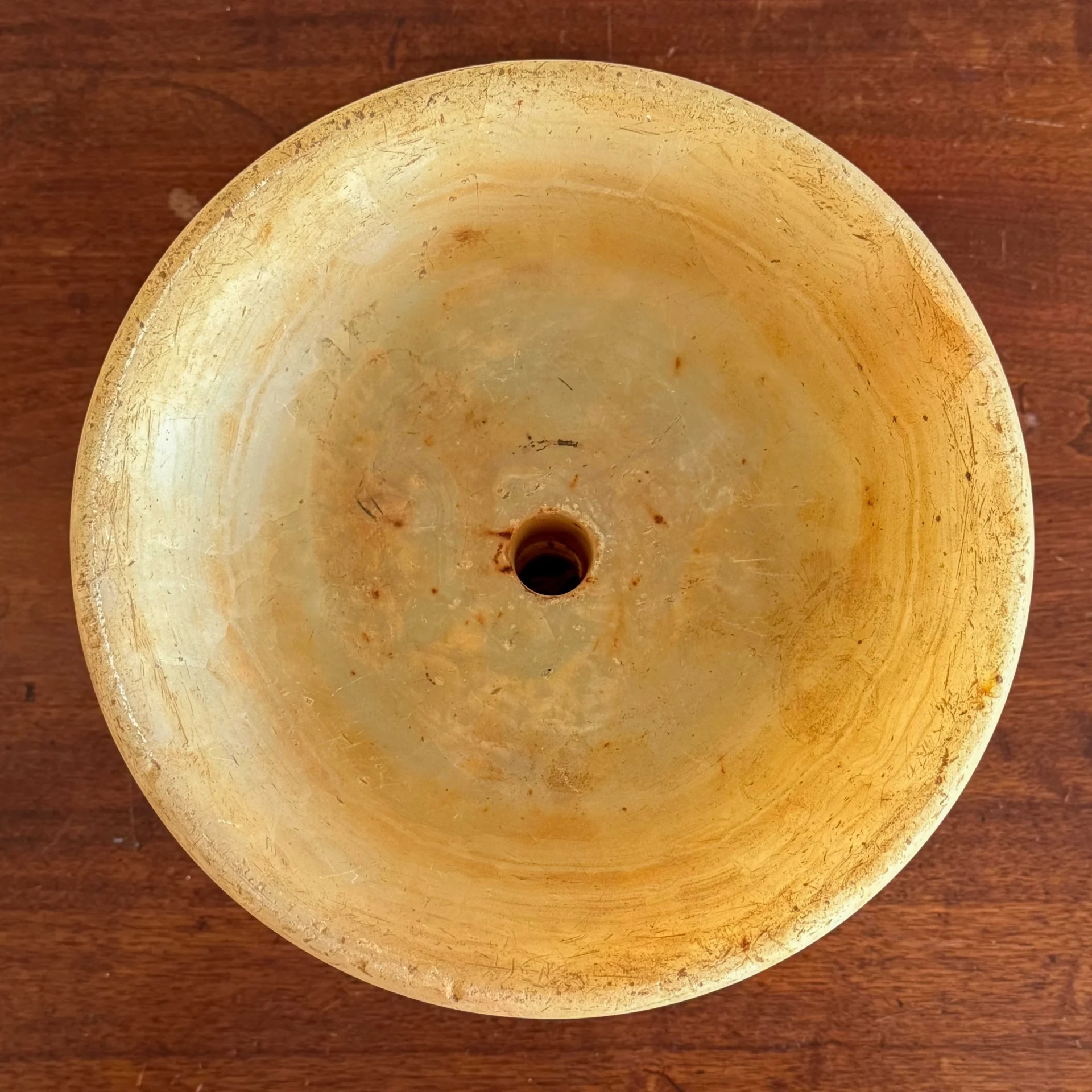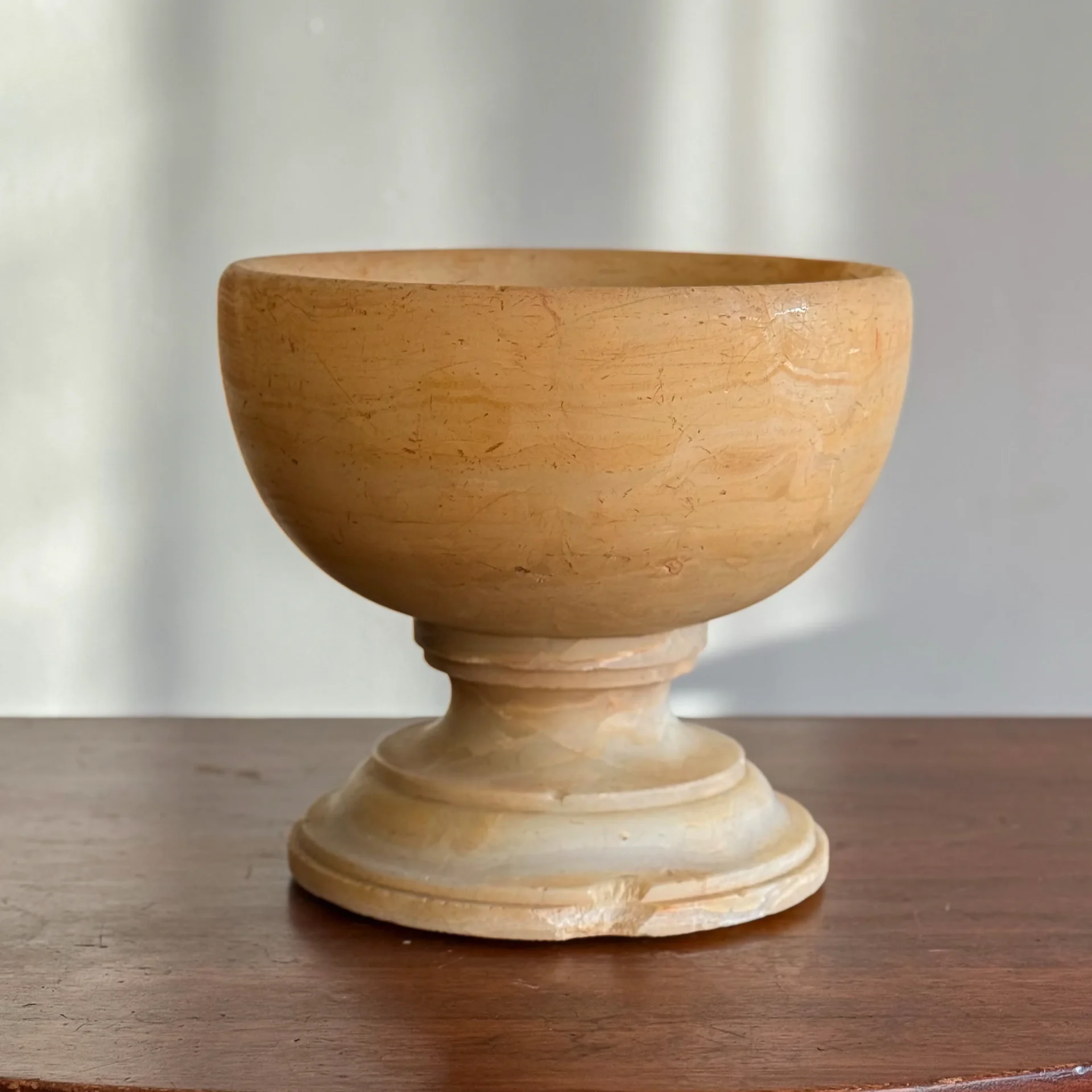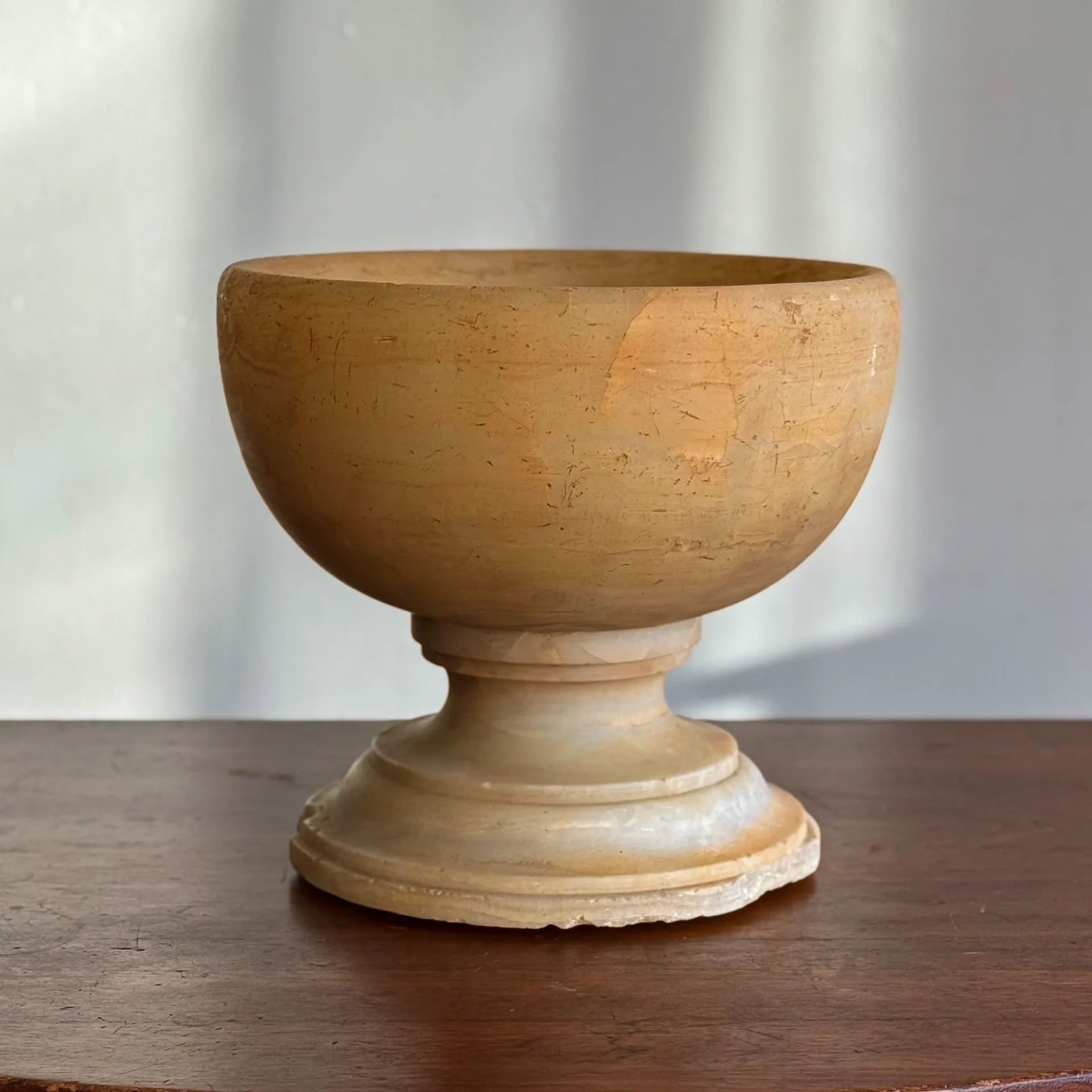A notably large antique alabaster bowl—easily the largest alabaster or marble bowl, salt, or compote I’ve handled.