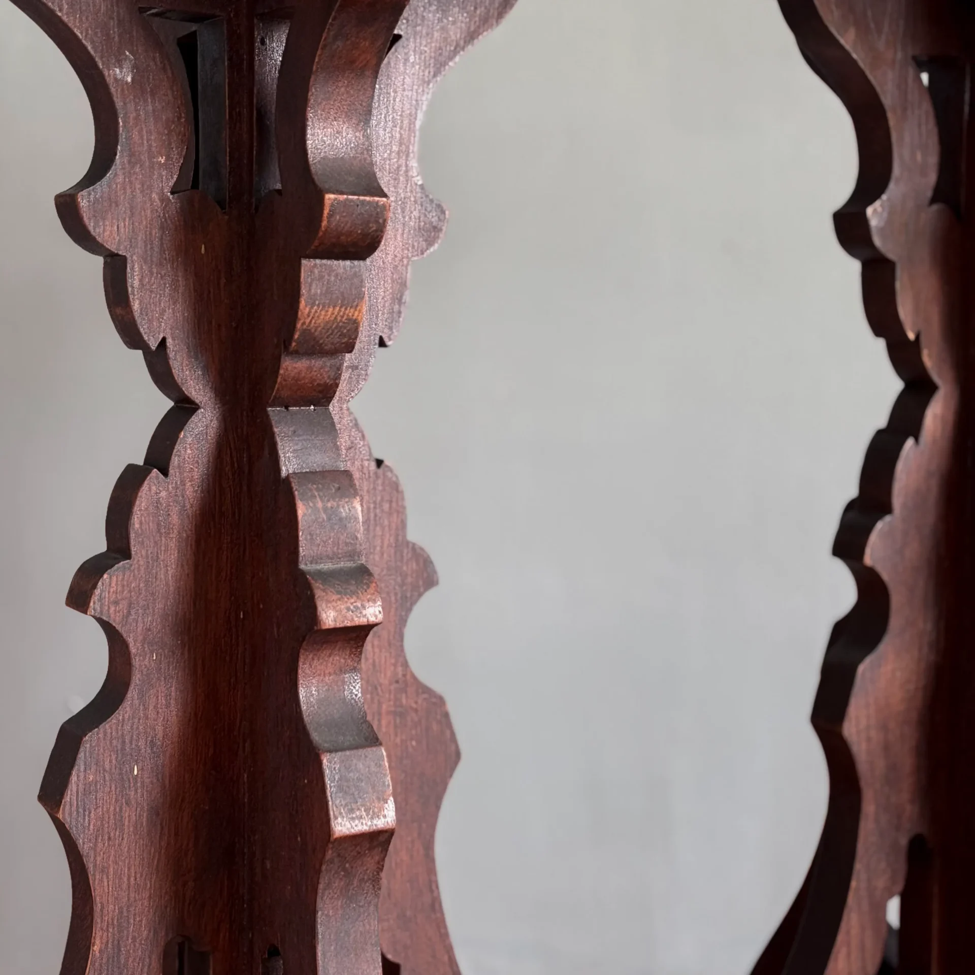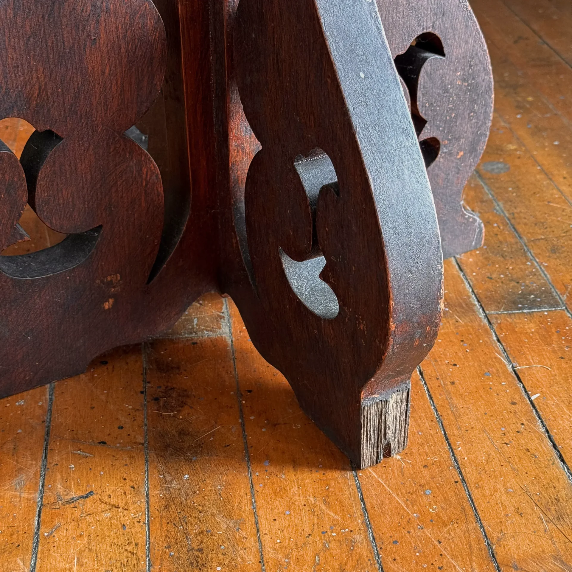 Original dark varnished surfaces overall.